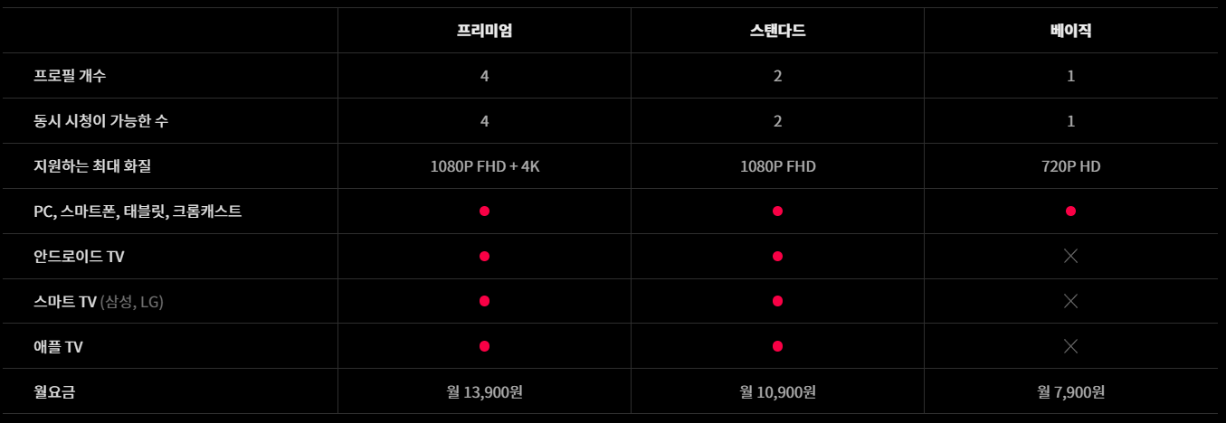 - 지원하는 기기 : PC, 스마트폰, 테블릿, 크롬캐스트, 안드로이드 TV, 스마트 TV, 애플 TV